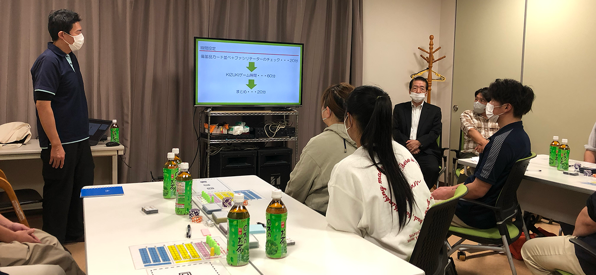 この訓練では、介護職員さんが災害時に起こる事象にどのような行動をとるべきか、防災ゲームを通じて問題イメージを共有し、気づき(KIZUKI)を見つけることが目的です。