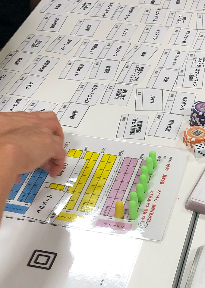 ゲーム終了後は、災害シュミレーションを通して果たして適切な対応だったか、物資は足りていたかなどの問題を改めて検証します。