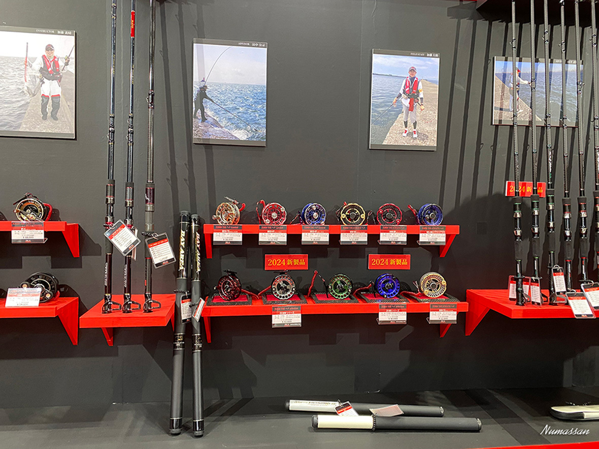 ヘチ釣り用のロッド、リールの新製品群を確認。