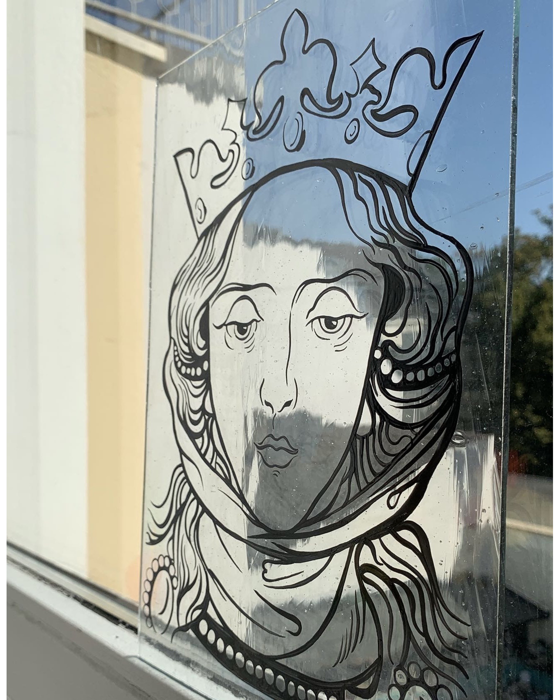 素材:アンティークガラスに黒色顔料による絵付け