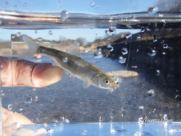 ここでやっと、本日最少のオイカワ6cmをゲット。ちなみにフライは#22 パラシュートでした。