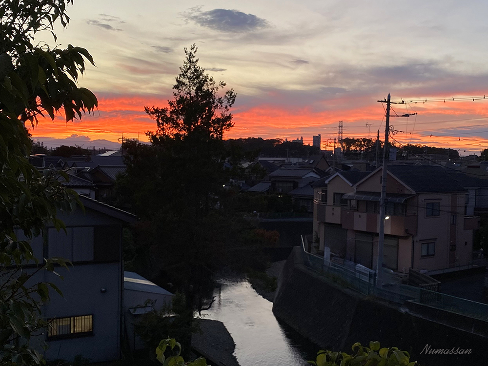 真っ赤な夕焼け、お天気は下り坂らしい。