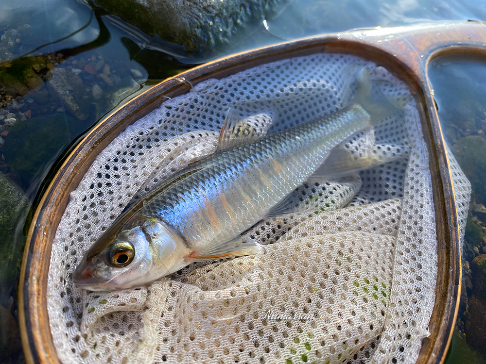 増水気味で流れの筋も変わり、夏色オイカワも消えていました。