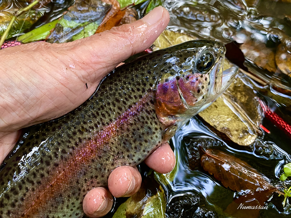 極小ミッジを捕食しているようだが、なんと山岳渓流釣り上り用のフライボックスしか持ってきていない大失態で、#20も早々にスルーされて完敗。