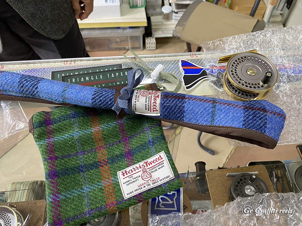 ところで、Harris Tweedマークのラベルが付けられたロッド袋、リール巾着袋はオシャレですね。