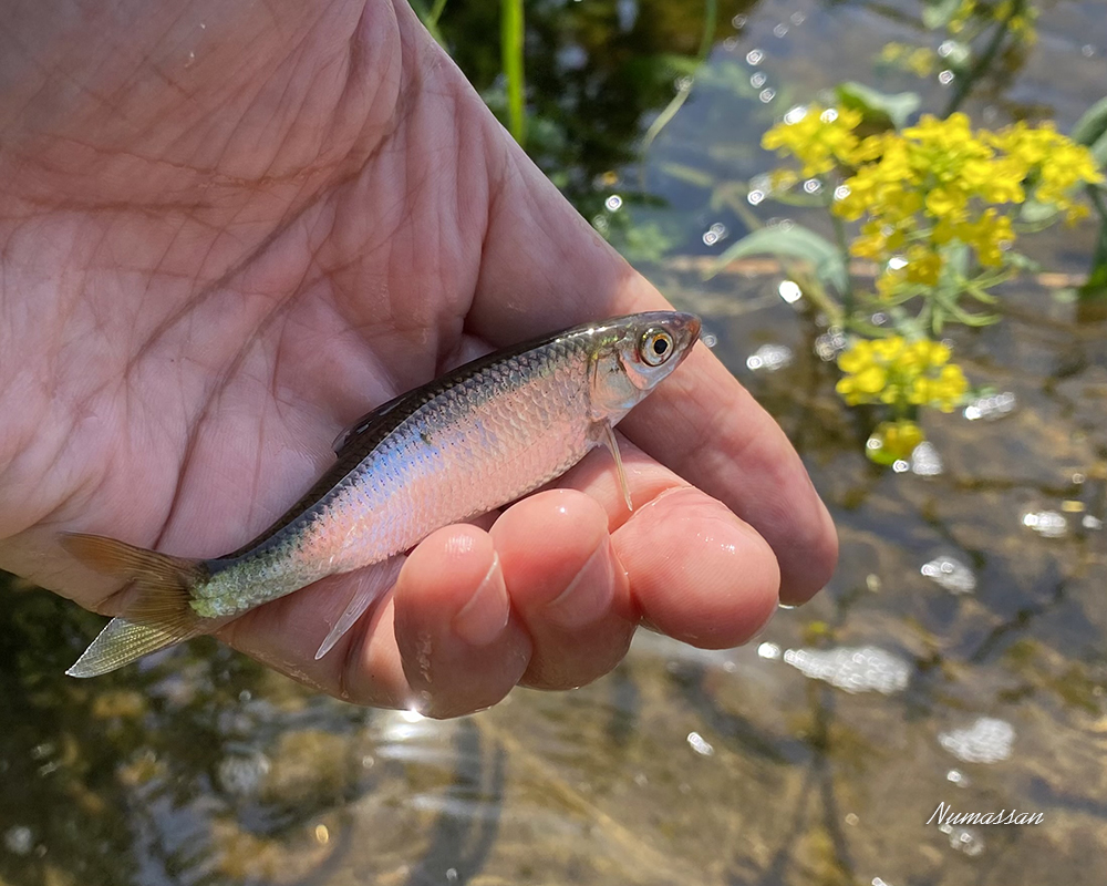 チビオイカワが時折フライを突っつくがフッキングにはいたらない…