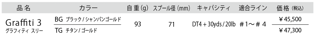 - ラインキャパシティ:DT4 + 20lbバッキングライン30yds