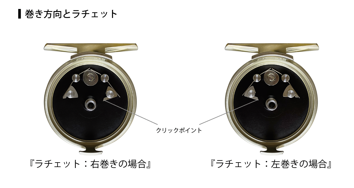 巻き方向を変更する場合、左右のラチェットをそれぞれ反時計方向に回します。(上※1)